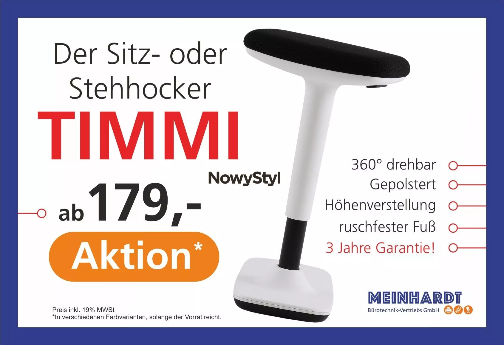 Der Nowy Style Timmi Hocker ist der perfekte Begleiter für Ihren Steh- und Sitzarbeitsplatz! Timmi beeindruckt durch einzigartiges Design und hoher Funktionalität. Der Sitz kann in der Höhe verstellt werden und somit ideal an die Bedürfnisse des Nutzers angepasst werden.
